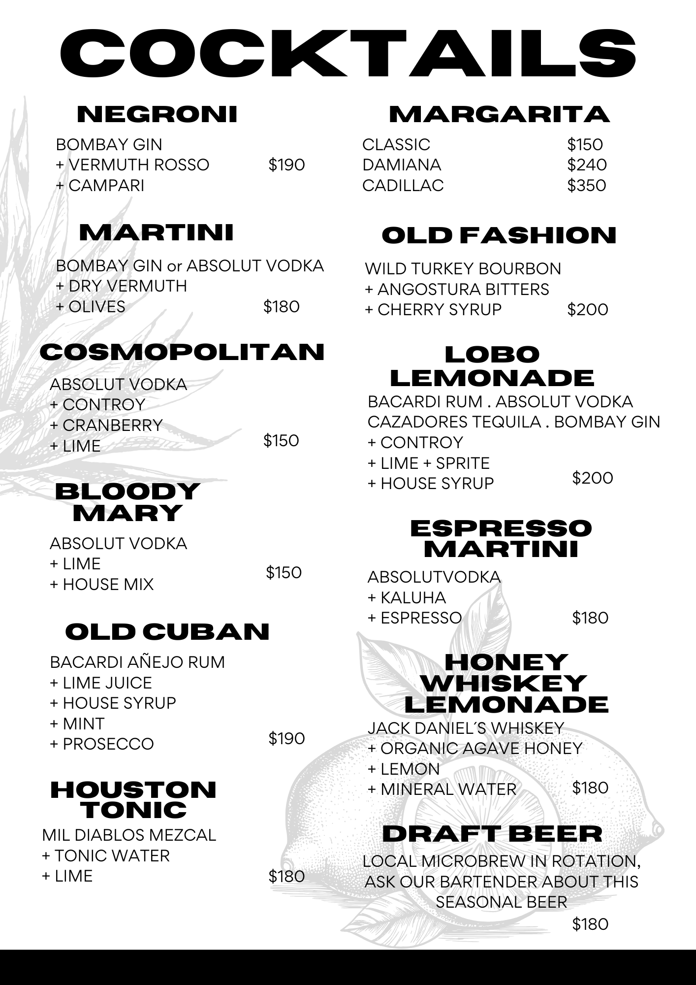 Experience classic recipes with a modern twist through our libations, as our mixologist tantalizes your taste buds with premium spirits. Each drink is crafted with quality ingredients, offering simplicity and elegance.